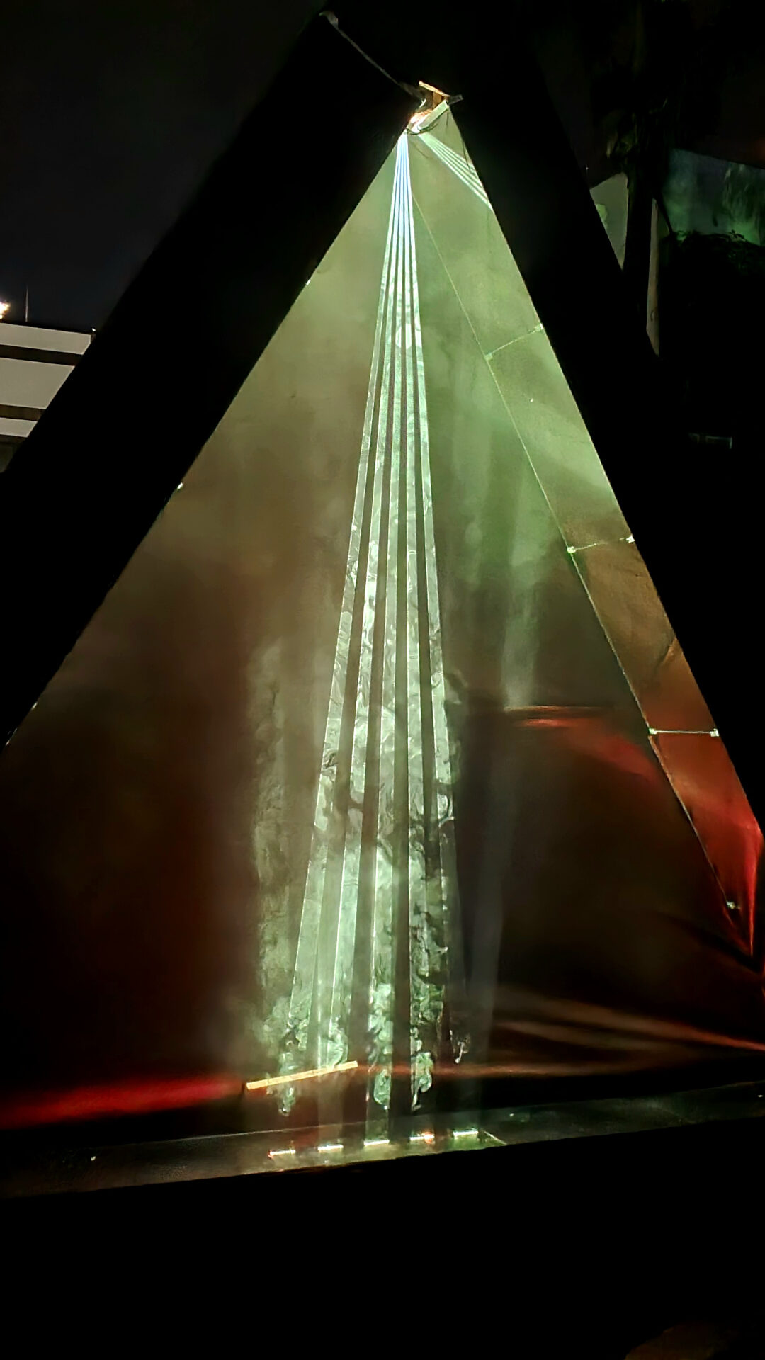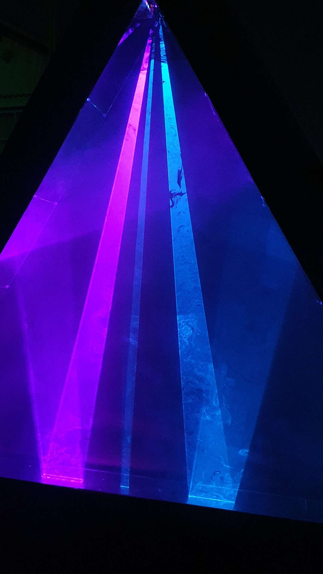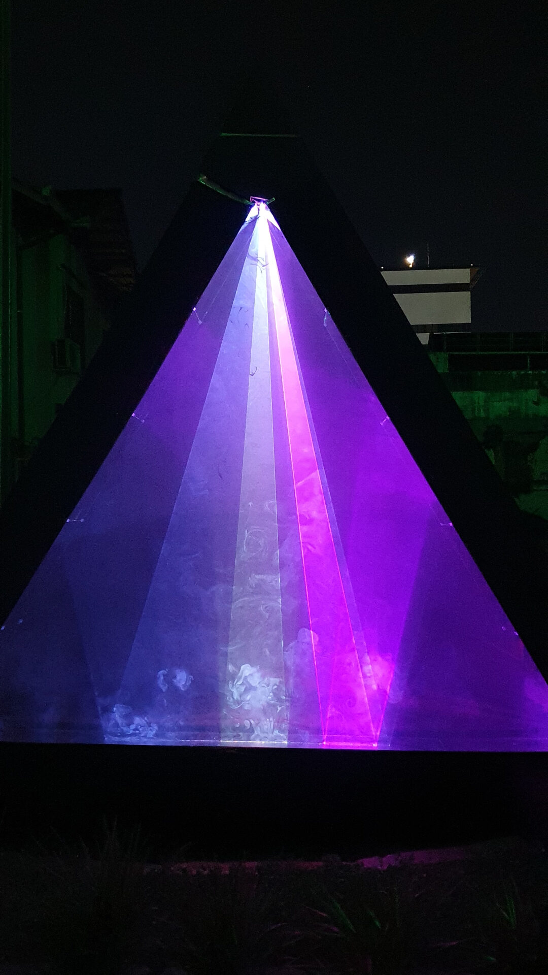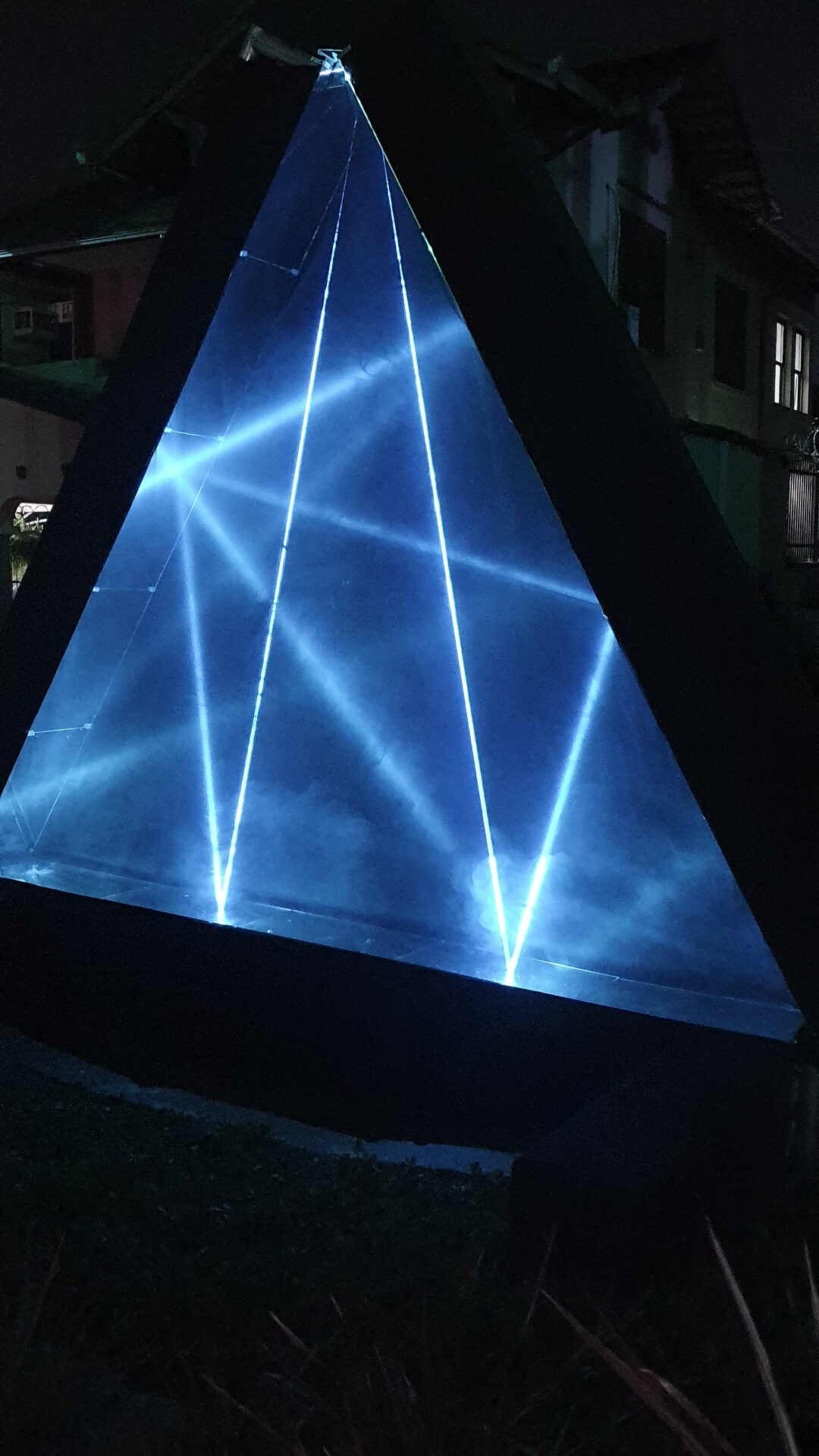 A estrutura tem o tamanho de aproximadamente 2,6m de altura e 3 de largura, mas pode ser executada em formato menor se necessário. É composta por 15 espelhos fixados em uma estrutura de box truss. O laser gera formas que se refletem infinitamente dentro da estrutura e está sincronizado com o som que é gerado pelos instrumentos.